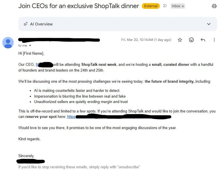 Had to kick this week off with a Bad Sales Email Post that was Shoptalk related.